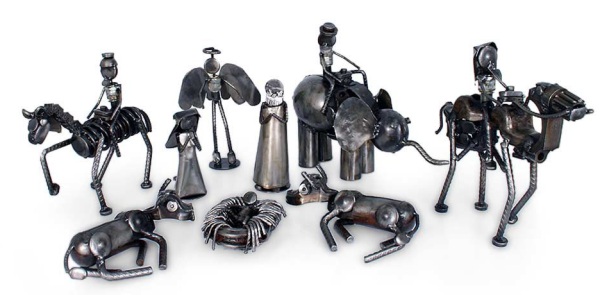 Modern art made from recycled metal parts. Unique take on the classic nativity scene. At Novica 0
