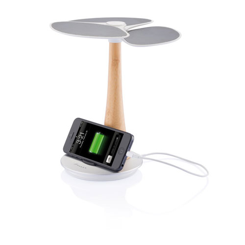 “The Ginkgo Solar Tree is the most sophisticated and elegant solar charger available. The Ginkgo has an integrated 4000mAh rechargeable lithium battery to store your clean energy and the capacity is displayed on small LED’s. It is made of eco friendly materials, reSound and bamboo. The USB output allows you to connect any phone, tablet or any other mobile device.”