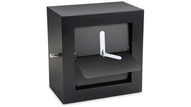“Quadrant, a slow moving ‘take it easy’ clock gives you no more than an indication of time. Instead of flipping every minute, The Quadrant Flip Clock only updates every fifteen minutes so you can never be 100 percent sure what the exact time is. If you’re not worried about being late for a meeting, and don’t mind unknowingly leaving work a few minutes early, this is the desk accessory for you.”