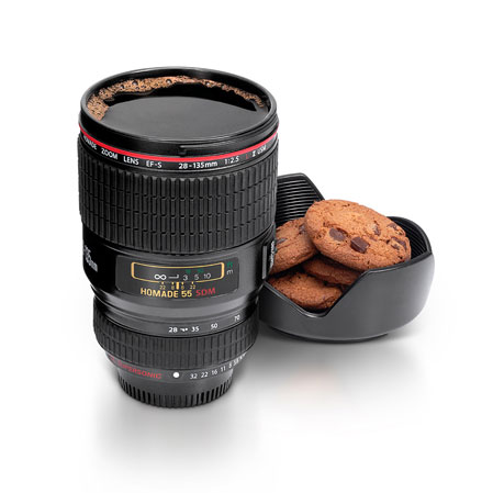 “Fancy yourself as bit of a photographer? Boldly display your photo fanaticism by using this quirky new Lens Mug. It looks and feels exactly like a real camera lens and will soon become an essential part of your photographer’s kit bag!
