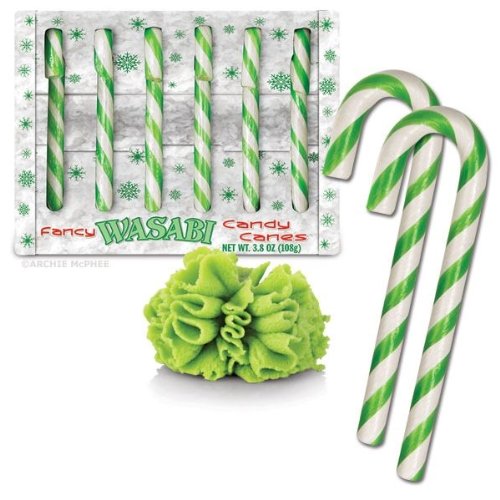 “These green-striped candy canes look just dandy hanging on your tree, waiting for someone to come along and snag one. Of course, instead of the minty goodness they’ll be expecting, they get a mouthful of horseradishy heat!”