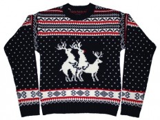 “This Naughty piece of clothing boldly crosses the line from a tacky Christmas sweater to an inappropriate masterpiece!”
