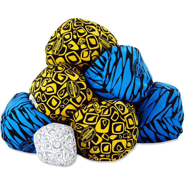 “The Outside Inside Backpack Bocce is Great for camping, the beach, tailgating, or backyard. Balls float, can stack/can be played indoors or out. Balls are made of double lined water repellent ripstop nylon. Balls are filled with polypropylene pellets/Washable.”